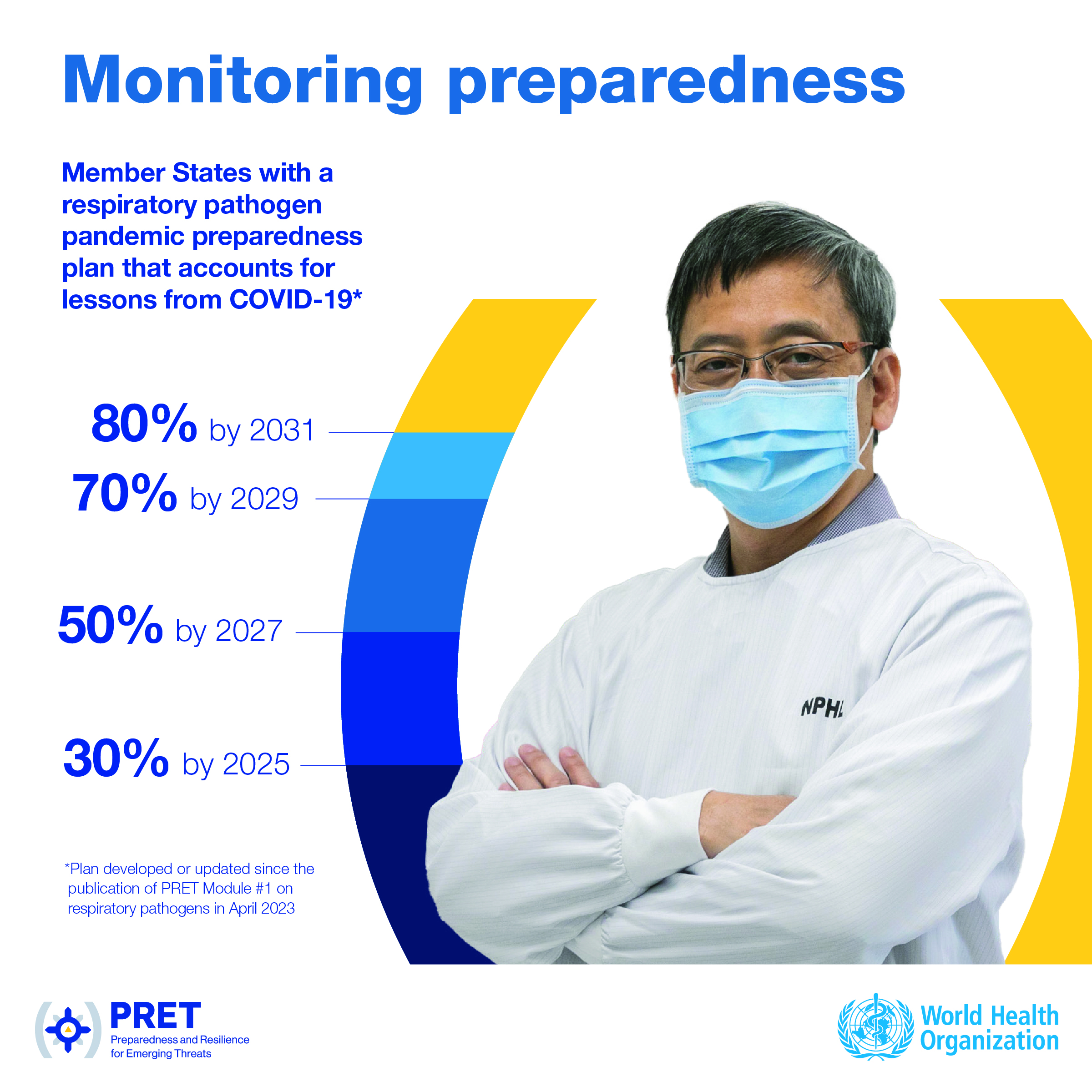 Applying learnings from the COVID-19 pandemic, Member States have started updating their plans for future respiratory pathogen pandemics. WHO has set global targets for Member States to develop or update their respiratory pathogen pandemic plans.