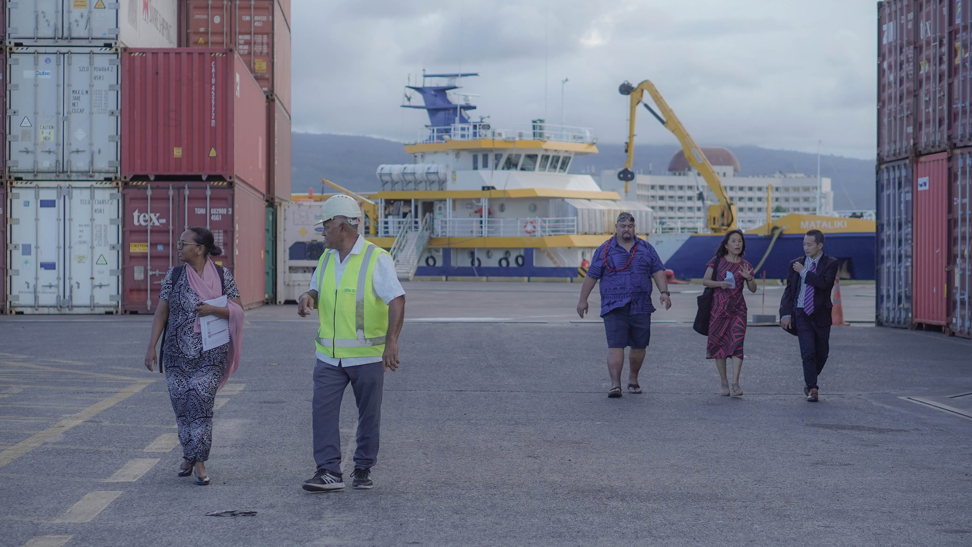 Health security experts visit Matautu Wharf as part of the week-long Joint External Evaluation in Apia, Samoa, to understand points of entry and border health. Photo: WHO/Samoa Video Production